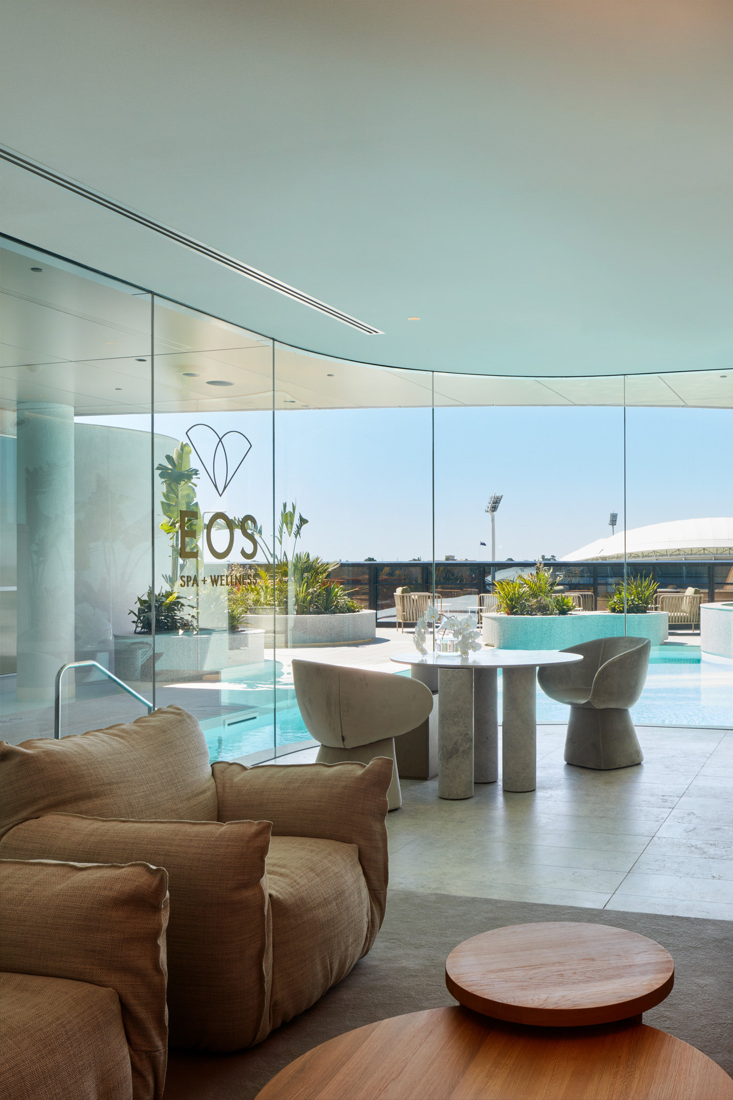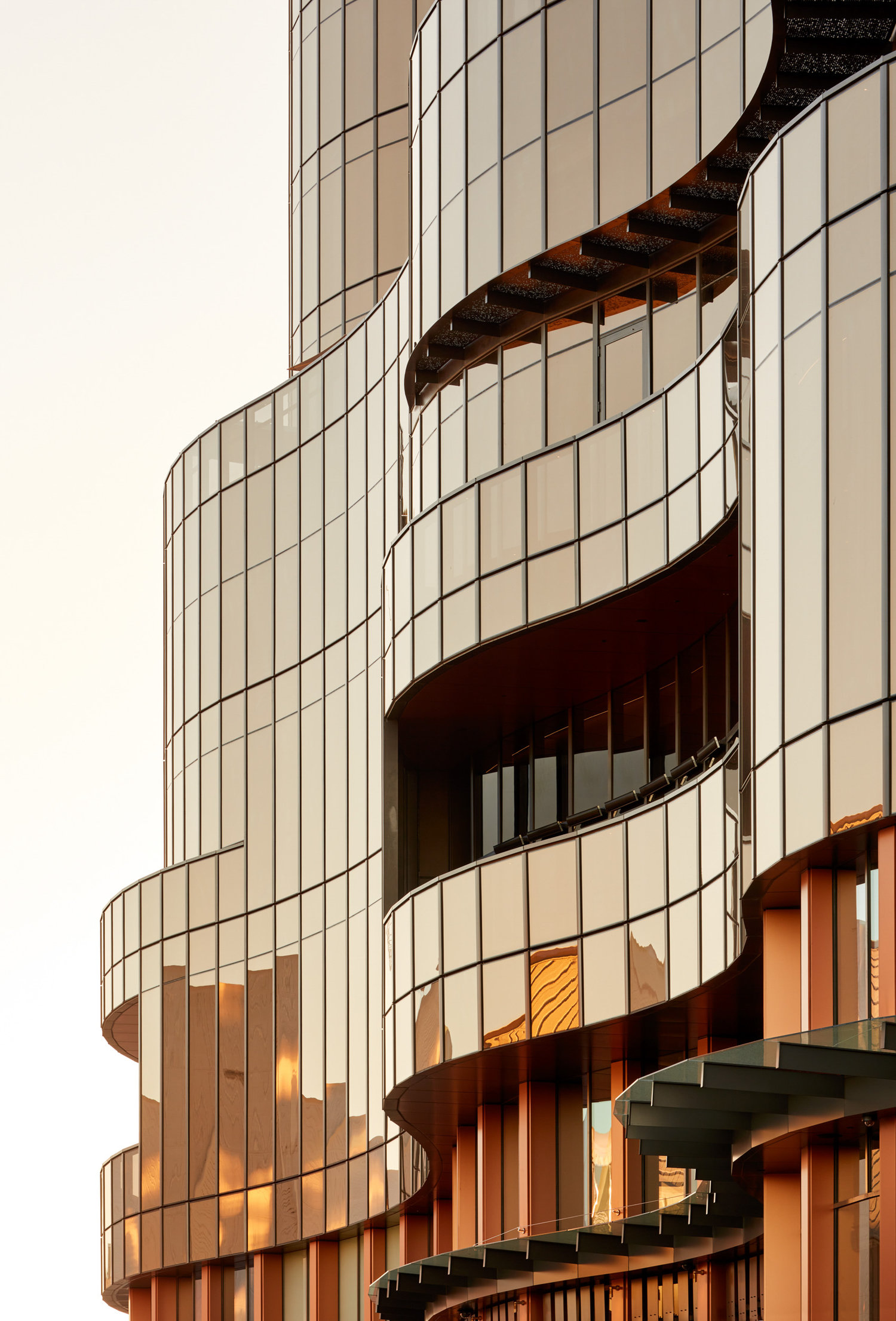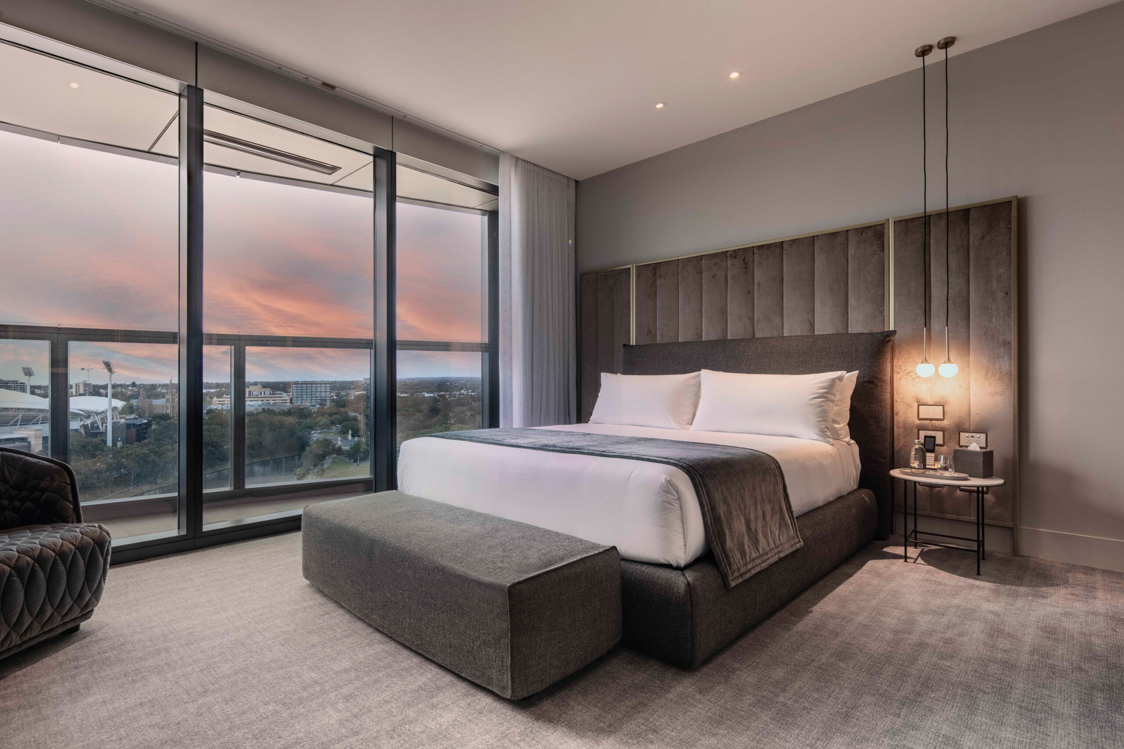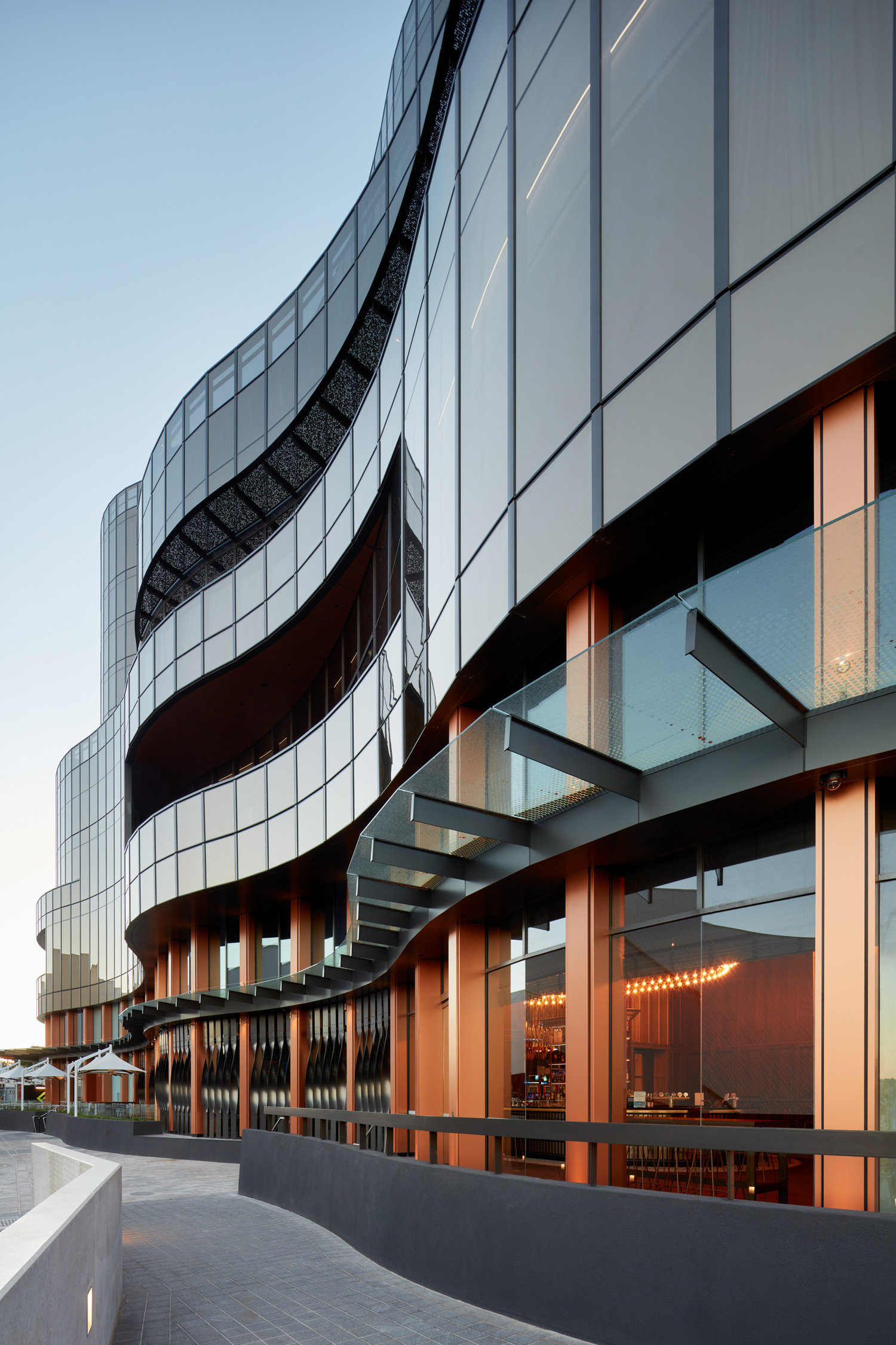 With its sweeping, curved golden façade, Eos by SkyCity offers a timeless and glamorous aesthetic for visitors to experience the ultimate in excellence and indulgence. The project connects to three floors of the adjacent historic and heritage listed Adelaide Railway Station. Such an iconic development has attracted many visitors to the Riverbank Precinct in the heart of Adelaide.
