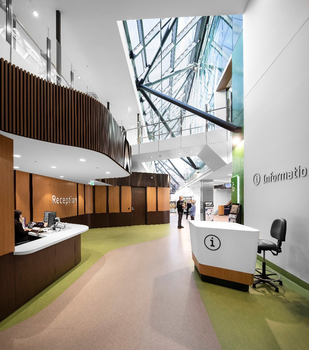 The redevelopment encompassed demolition, new construction, major refurbishments, services upgrades and the construction of a new infill building connecting previously disconnected wings across multiple levels. The completed hospital now includes:
